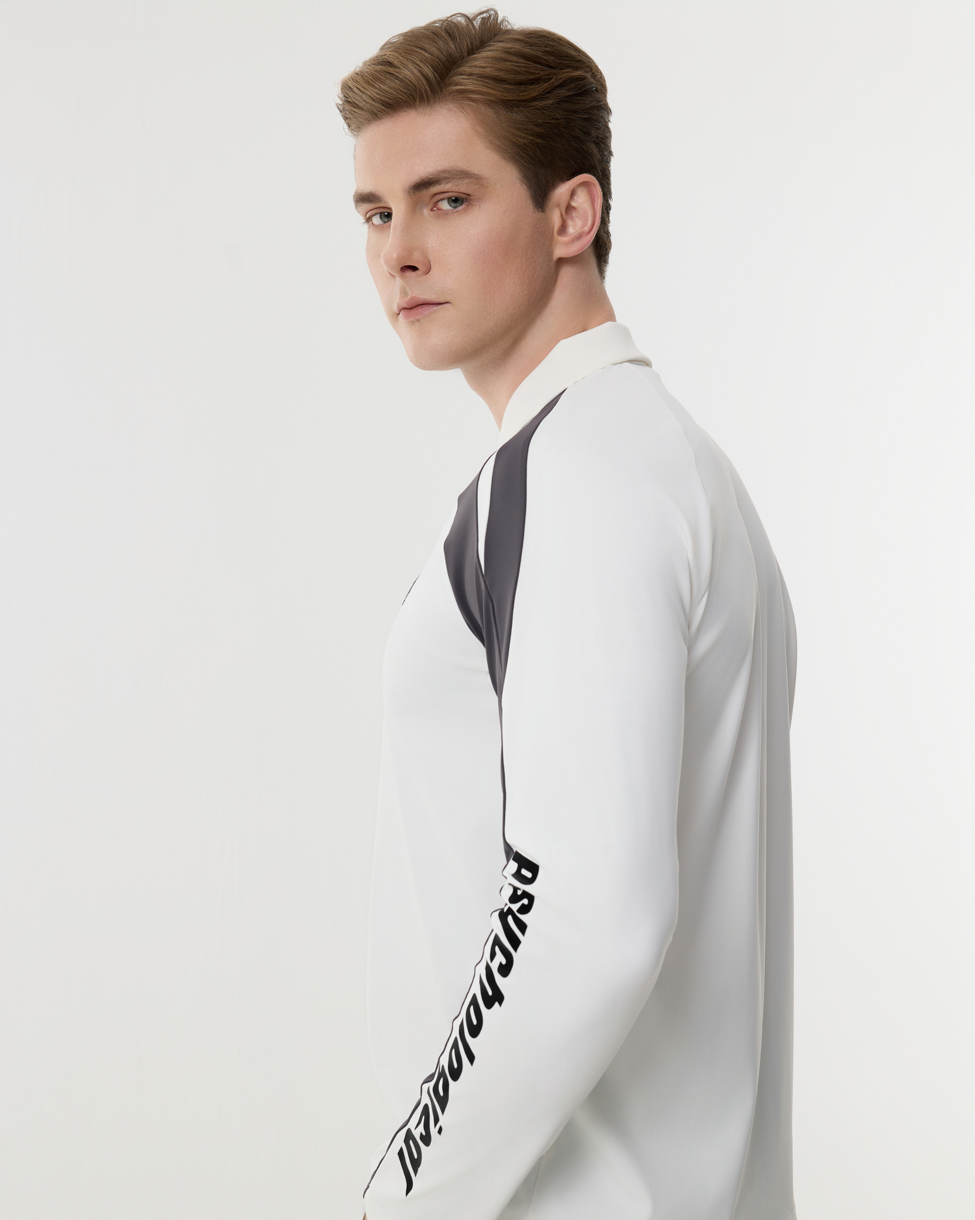 The PSY EdgeLine Golf Tee reimagines contrast with a refined grey-and-white palette. Thoughtfully placed panels contour the shoulders for a stronger silhouette, while printed sleeve details add subtle edge. Designed for both performance and polish.