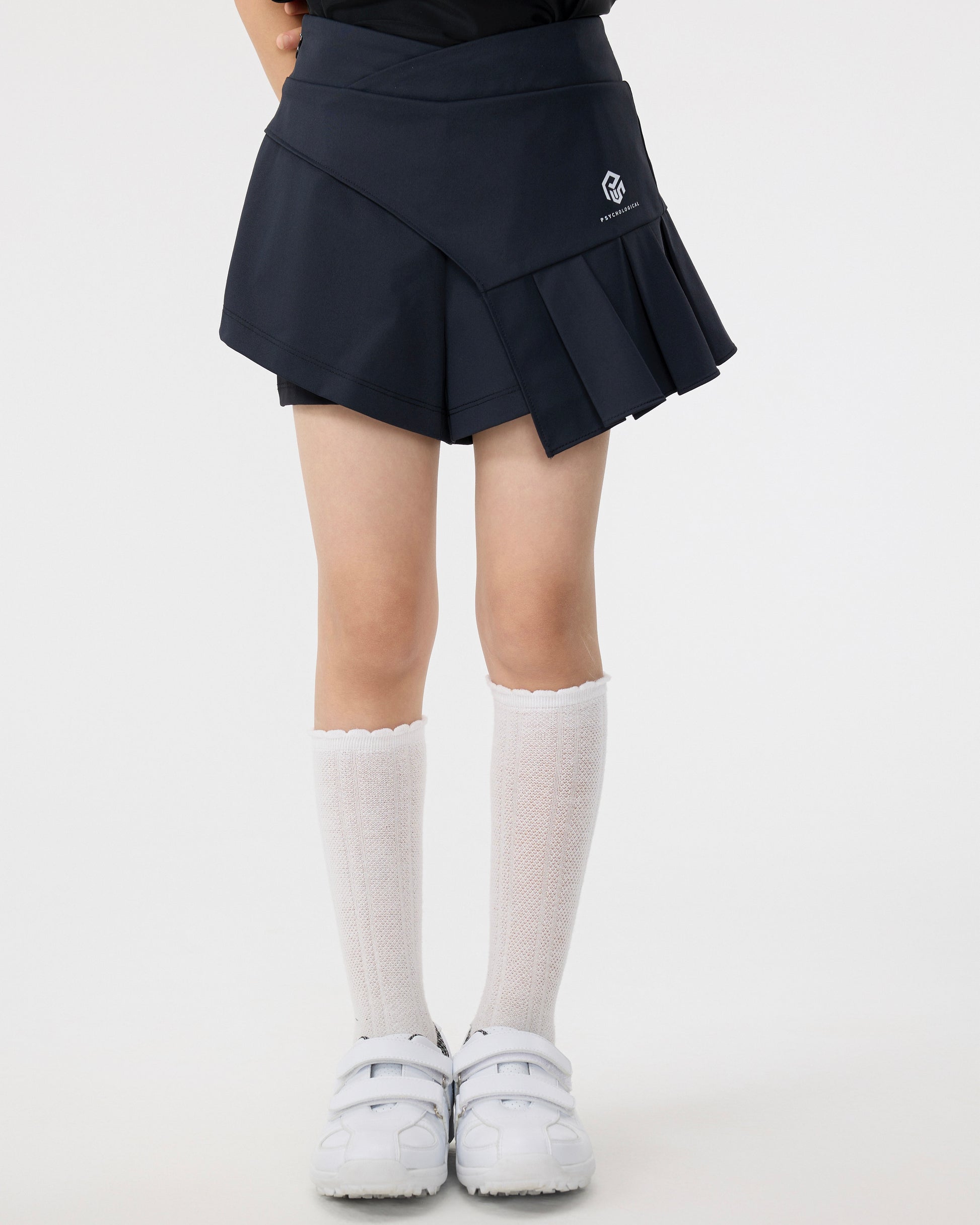 This high-waisted skort combines a flared skirt with built-in shorts for active play. The √-shaped waist smooths and flatters, while stretchy polyester-spandex fabric allows full mobility. Perfect for tennis, dance or school, with anti-slip lining to stay in place. Easy-care hand wash.